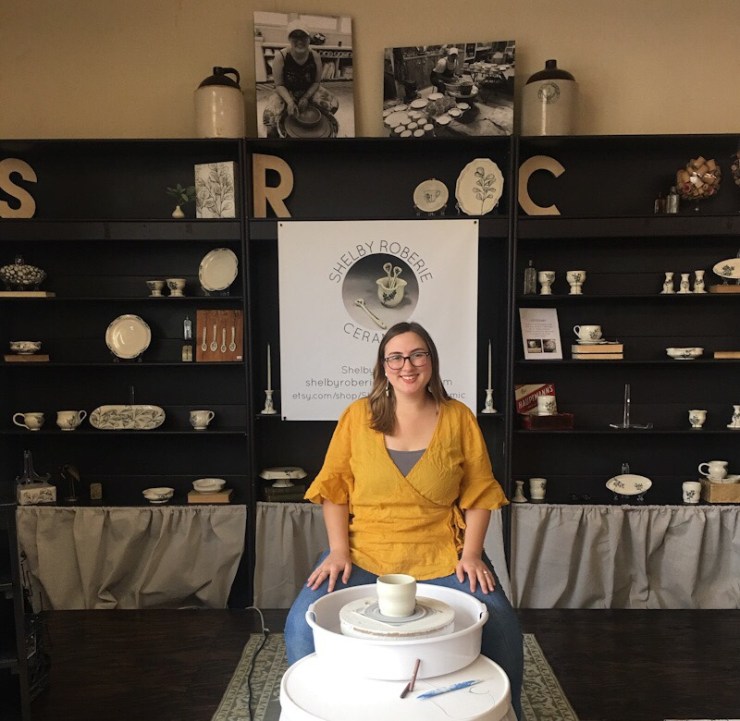 Shelby Roberie Ceramics just got a brand new studio and store in Welsh. My Grand Opening was last Saturday, July 20th. Since then, I’ve been working to get new things on the shelves and start planning my Fall series. I’ve also hosted my first event, “Spinning With Shelby.” For this event, I had several students come to the studio for 20 minute sessions to try their hand at pottery. I am hoping to host similar events in the future, as well as paint-your-own pottery classes and jewelry workshops.