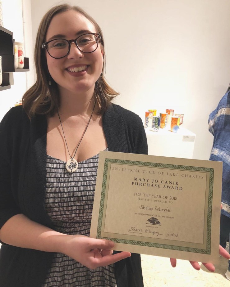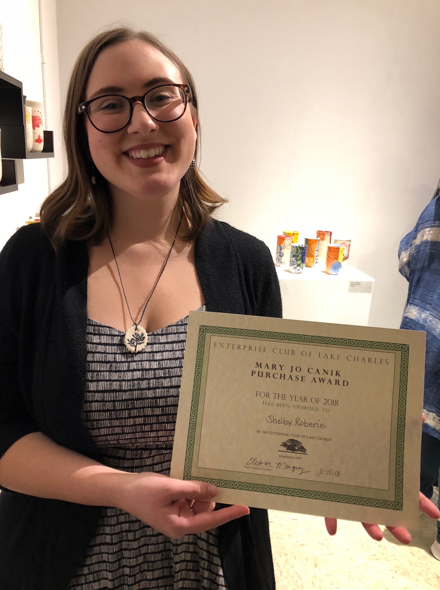 In November came my Senior Thesis Exhibition. I, along with several other senior art students, displayed our final bodies of work produced at McNeese State University. The exhibition was beautifully displayed and the opening went very smoothly. A huge thanks goes out to the department head Lynn Reynolds, as well as the rest of the art department faculty. I’d also like to thank the Enterprise Club of Lake Charles for awarding me a Purchase Award for my ceramic pitcher.