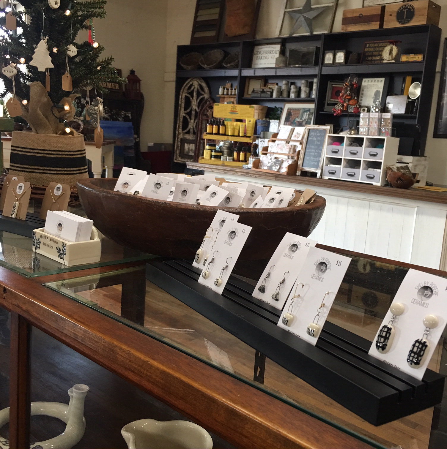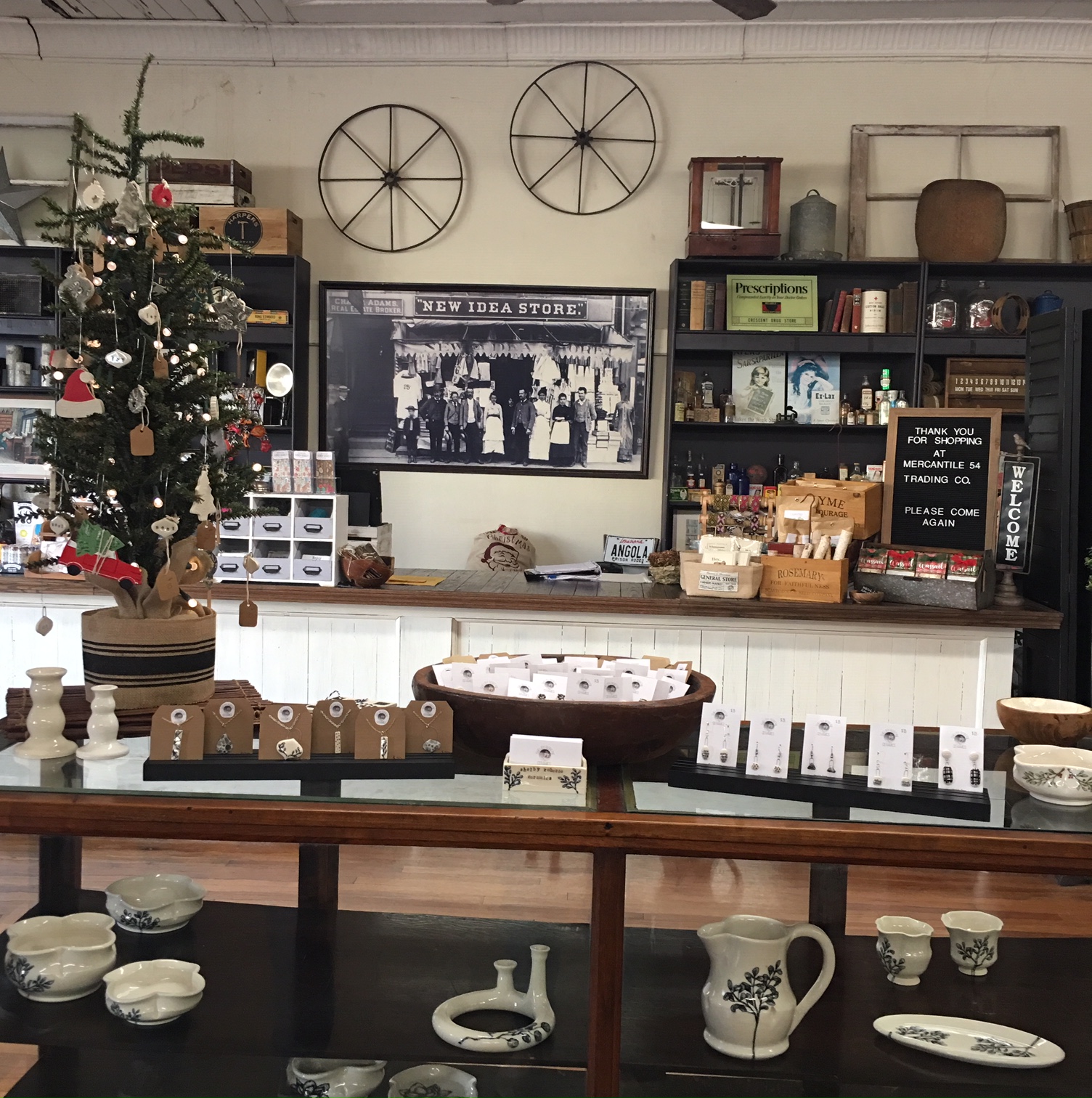 I have much more than just earrings available for purchase at Mercantile 54 Trading Co! My display includes jewelry, pottery, and Christmas ornaments. If you are in the Welsh, Louisiana area, tomorrow (Friday, December 21) is the perfect opportunity to shop. Mercantile 54 Trading Co. and Mr. Clint’s Candy and Curiosities are hosting a Sip & Shop holiday shopping event! Sip & Shop begins at 6pm and will feature drinks, hor d’oeuvres, and complimentary gift wrapping. Stop by and grab some gifts or stocking stuffers for everyone on your list!