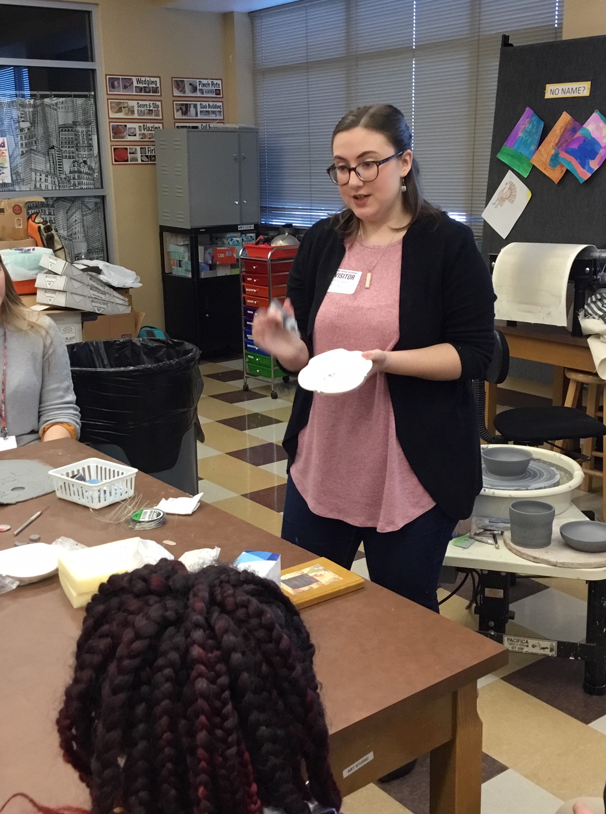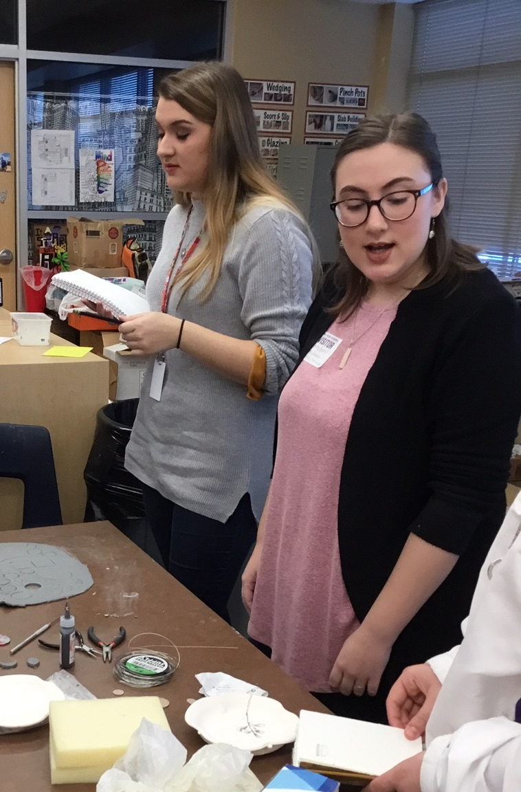 As the visiting artist, I got to spend 50 minutes with each class, first showing them images of my work and answering any questions that they had, then doing a few demonstrations. The demonstrations varied with each class because I let them chose what they wanted me to show them. Some of the things I got to show the classes were how I make my jewelry, how I surface my pieces with floral designs, and how I make certain pieces on the wheel.